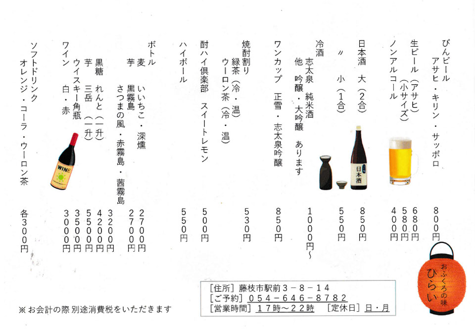 | おふくろの味 ひらい 054-646-8782 |