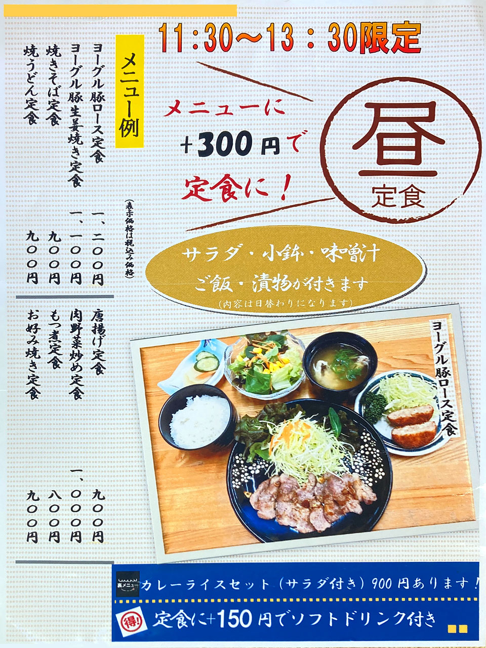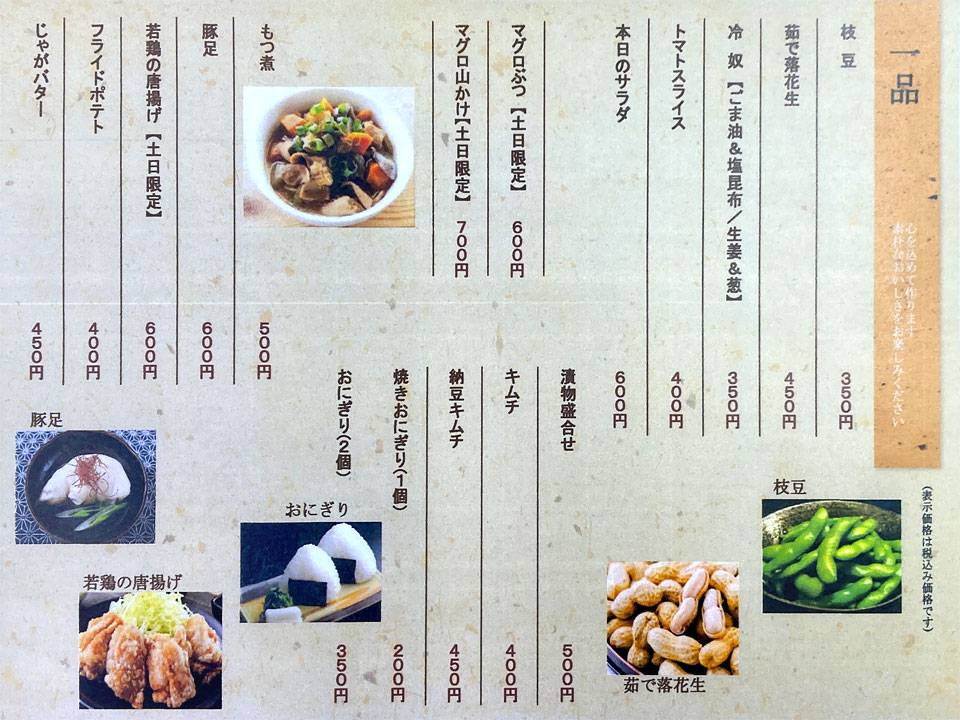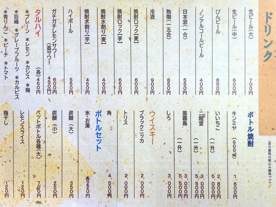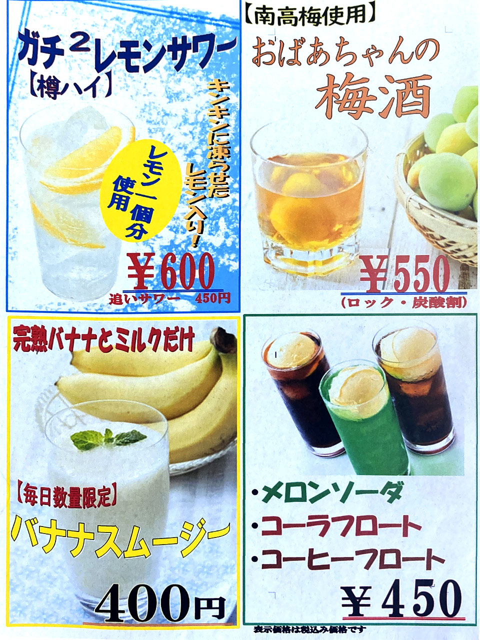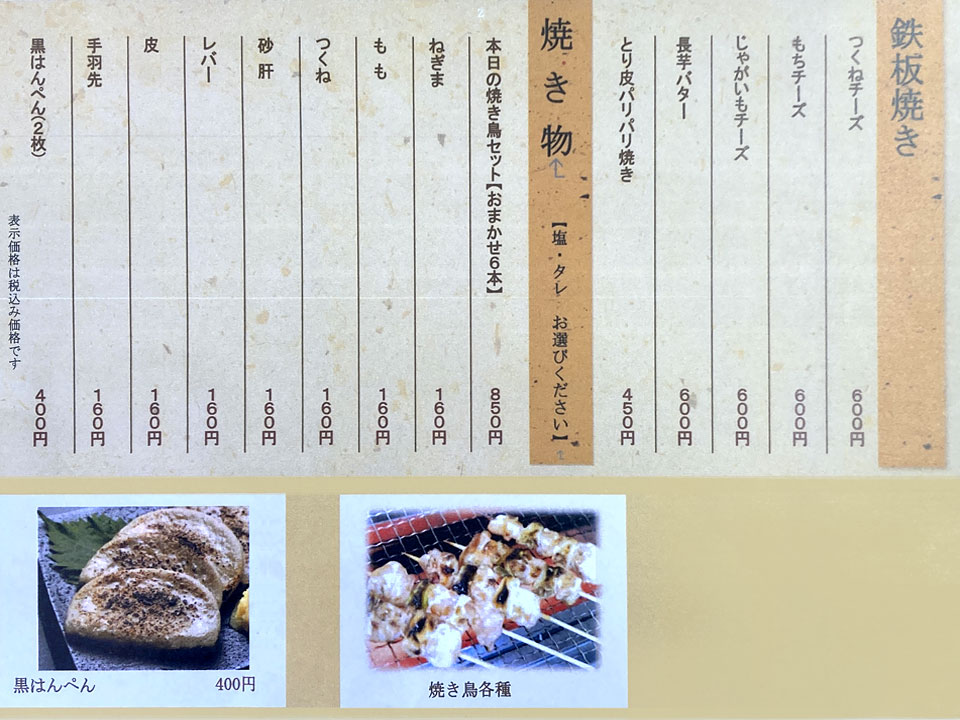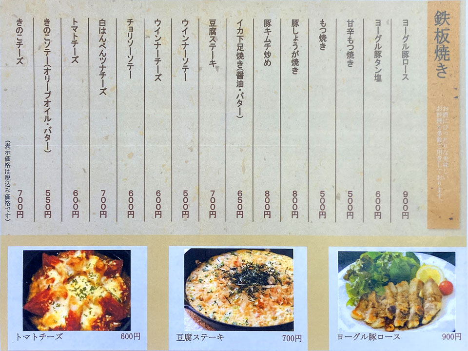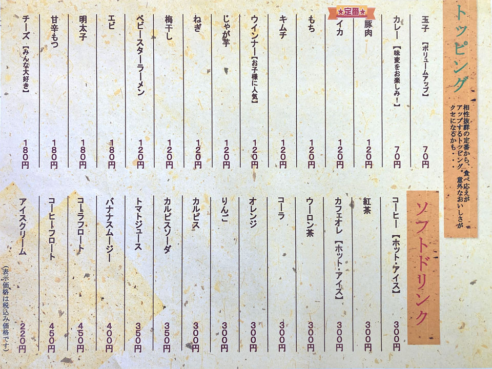 ※値段は下のメニュー表をご覧ください。 |