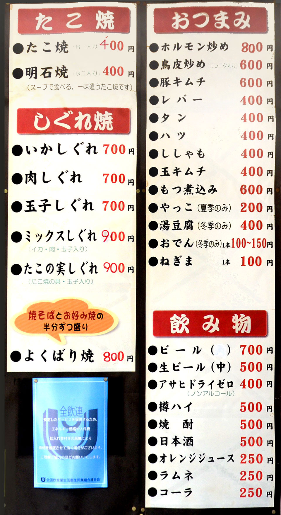 | 昭和42年に富士宮で初めてのたこ焼き、屋号のいわれもそんなところからです。 |