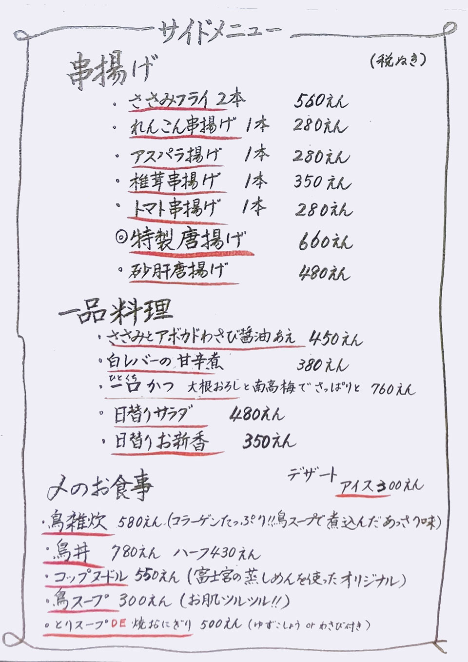 | 鳥ムネのたたき 800円 |