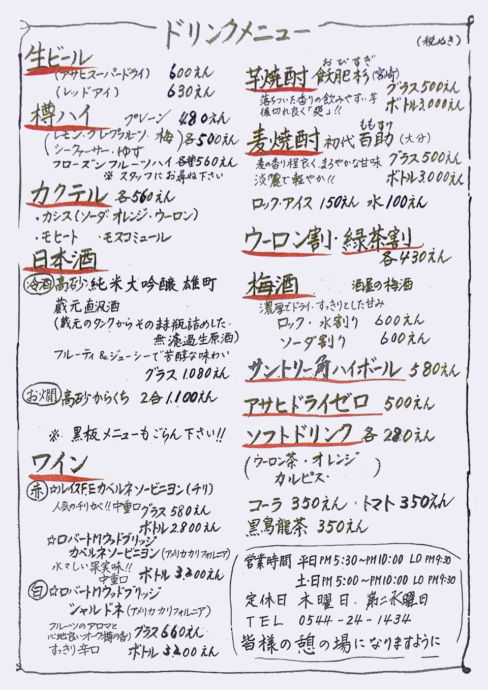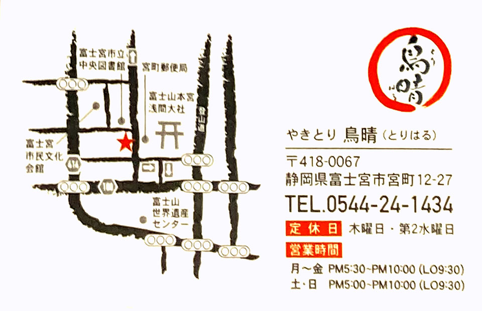 | 炭火焼鳥専門店 鳥晴 0544-24-1434 |